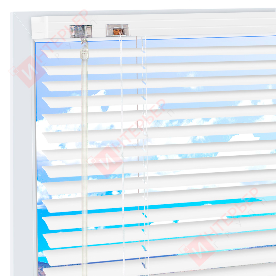 Горизонтальные алюминиевые жалюзи на пластиковые окна - цвет белый