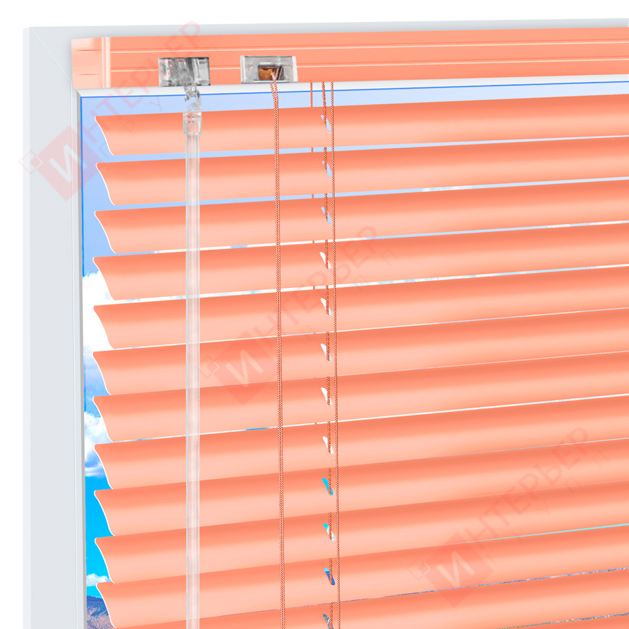 Горизонтальные алюминиевые жалюзи на пластиковые окна - цвет бежево-красный