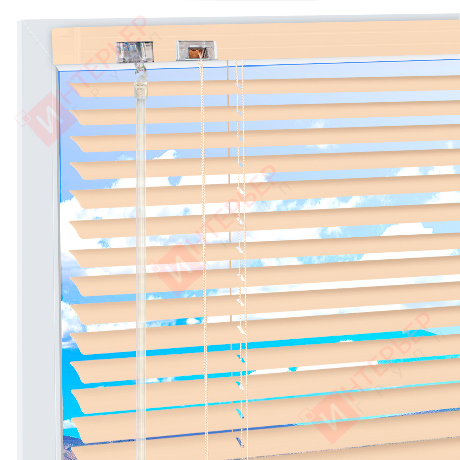 Горизонтальные алюминиевые жалюзи на пластиковые окна - цвет бежевый 16 мм