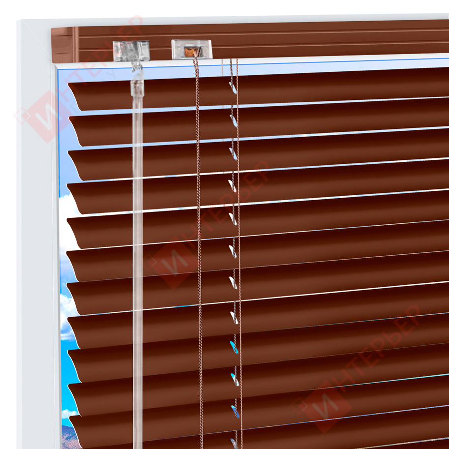 Горизонтальные алюминиевые жалюзи на пластиковые окна - цвет орехово-коричневый