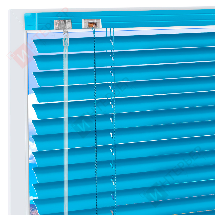 Горизонтальные жалюзи на пластиковые окна — цвет темно-голубой
