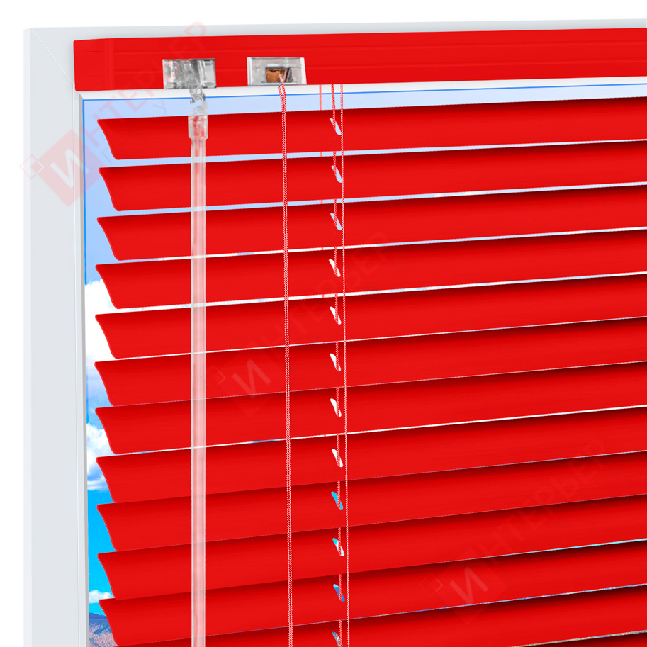 Горизонтальные алюминиевые жалюзи на пластиковые окна - цвет транспортно-красный