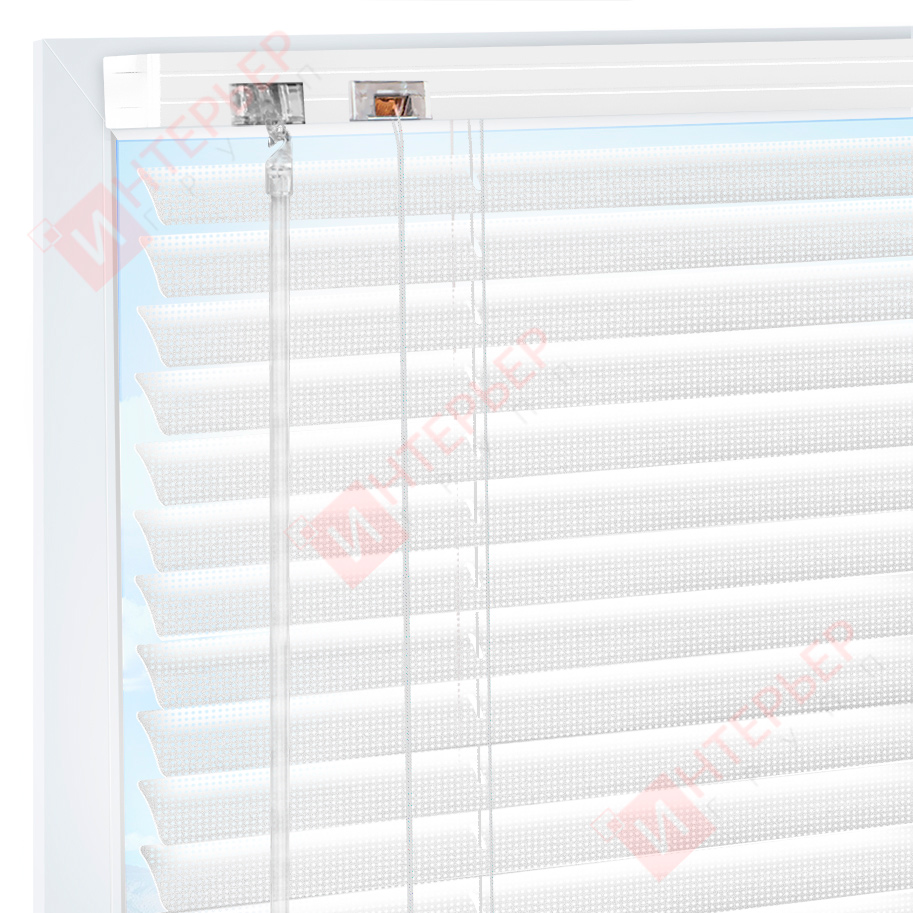 Горизонтальные перфорированные алюминиевые жалюзи на пластиковые окна — цвет белый