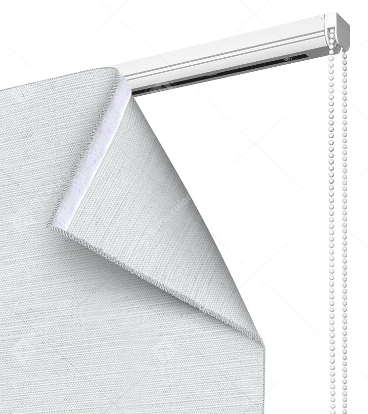 Комплектация: алюминиевый карниз с впрессованной велкро лентой, подъемный механизм ( цепочный или электропривод), тканевое полотно, нижний утяжелитель тканевого полотна, фиберглассовые стержни