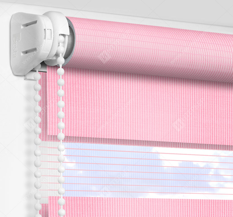Задерживает от 30 до 80% света. Цвет: розовый (RAL 3015). Ширина полос: ткань 7.5 см, сетка 5 см.