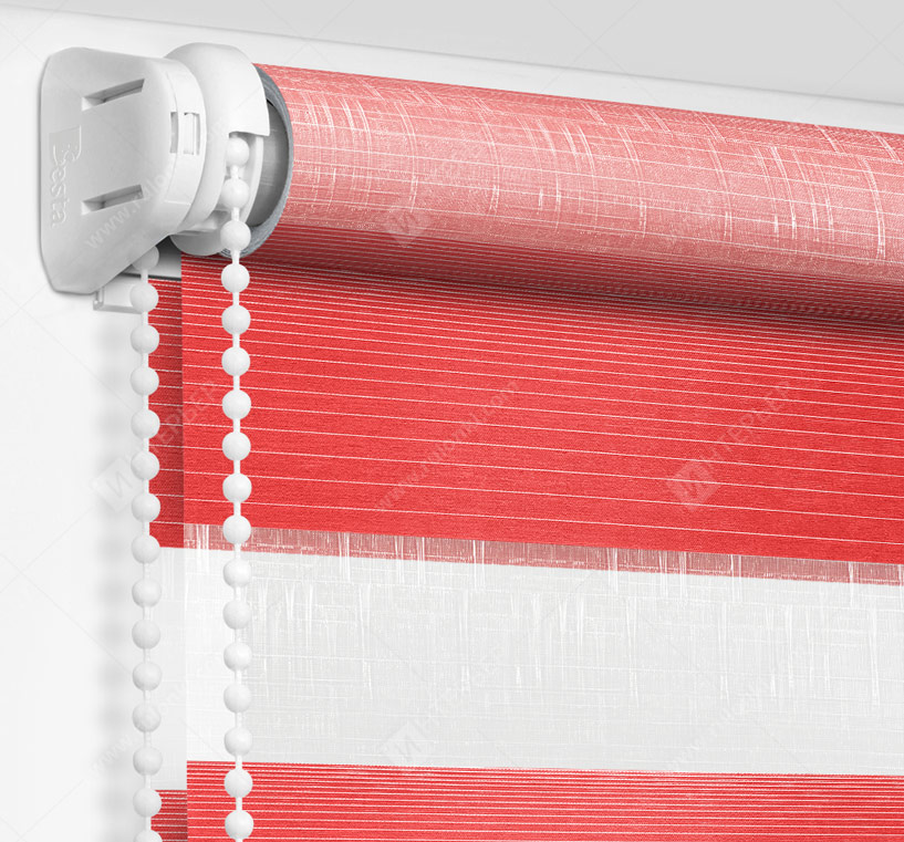Рулонные шторы Зебра работают следующим образом: полоски ткани смещаются так, чтобы совпали светлые или темные слои, образуя, плотное или более прозрачное полотно. Так обеспечивается ночной или дневной режим затемнения. Также можно поднять шторное полотно полностью, открывая окно. По умолчанию - цвет фурнитуры белый.