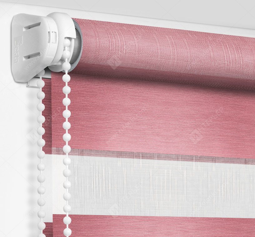 Рулонные шторы Зебра работают следующим образом: полоски ткани смещаются так, чтобы совпали светлые или темные слои, образуя, плотное или более прозрачное полотно. Так обеспечивается ночной или дневной режим затемнения. Также можно поднять шторное полотно полностью, открывая окно. По умолчанию - цвет фурнитуры белый.